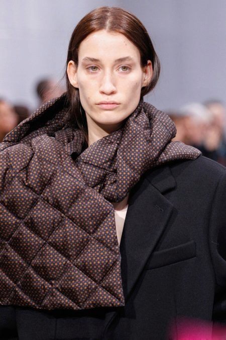 - Quilted patterns. When it comes to scarves, it seems that you can’t imagine anything like that. But this is not so, and designer Demna Gvasalia is the clearest example of this. Quilted scarves quickly burst into the world of fashion, becoming the most talked about accessory in the autumn-winter season.
