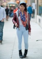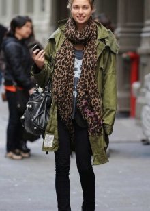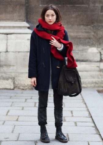 - A military scarf or pipe scarf is suitable for the military style. It will be interesting with this style to look narrow, but long knitted scarves decorated with fringe.