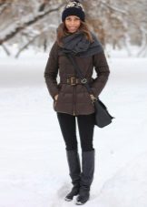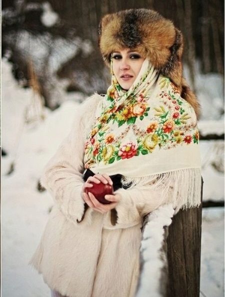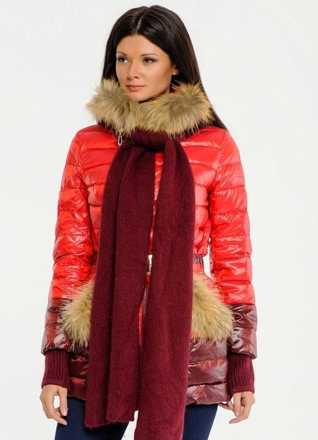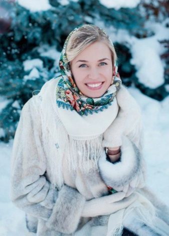 A light shawl thrown over the shoulders at an angle will decorate your image not only in a down jacket, but also in a fur coat.