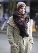 - Volumetric knitted scarves, long and wide stoles are suitable for a single-breasted coat, depending on the color of the coat - variegated or plain with a large, voluminous pattern. Such scarves are usually worn over.