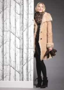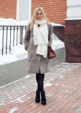 Voluminous scarves or snoods are most often chosen for sheepskin coats. An openwork scarf will work well with a smooth sheepskin coat, bright with a dark one, and matched with a light one with a light one. Thin scarves with a sheepskin coat are not worn.