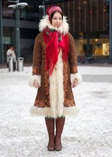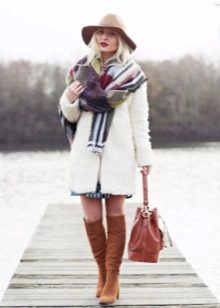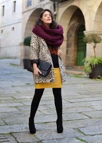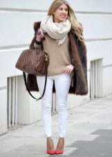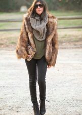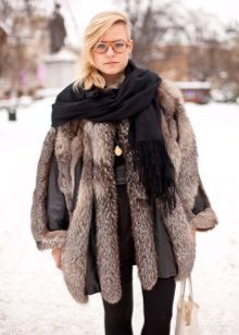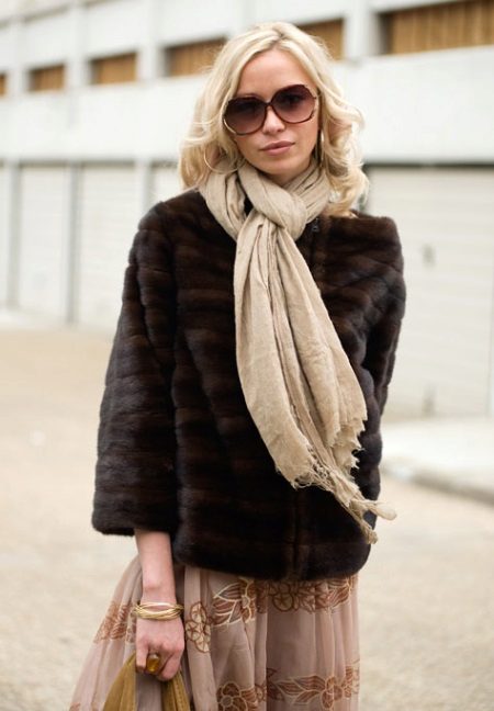- You should not pick up a scarf decorated with various protruding decor elements - beads, sequins, chains - to such a fur coat - such things will not only look cheap and tasteless, but they will also spoil the fur with a high degree of probability.