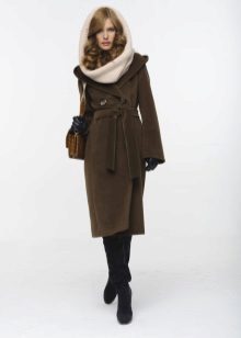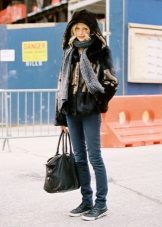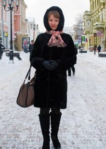 It is very popular to combine a scarf with a fur coat today. Put the scarf over your head and tie it in front or back over the scarf. If the fur is thin (for example, a mink), you can leave the edges on top of the hood, otherwise, it is better to tuck the ends of the scarf under the fur coat.