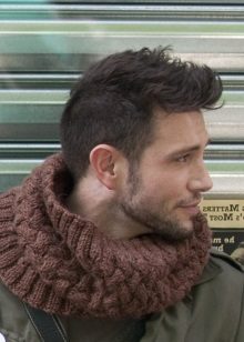 A scarf for a sheepskin coat, you can knit, like any thick scarf on a down jacket or coat. The most successful options are snood or clamp.