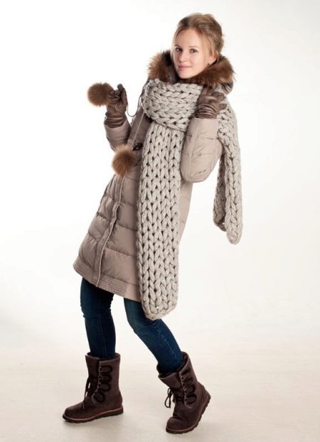 A very thick knitted scarf just thrown over the neck, half a ton lighter than a down jacket - what could be easier? Nevertheless, a stylish and unbroken image is obtained in which you will be warm and comfortable.
