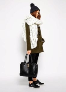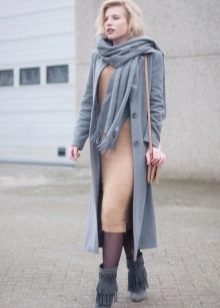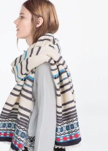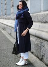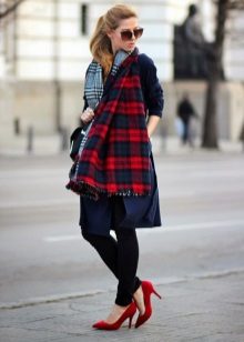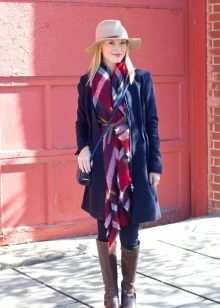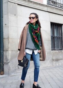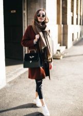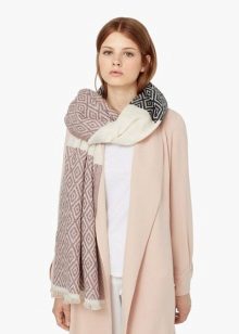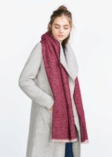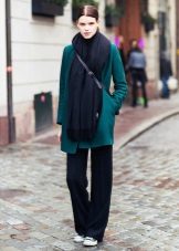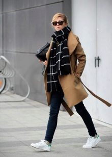 Looks great scarf scarves, casually thrown over the coat. It is best if the coat has a classic collar or stand-up collar. At the same time, it is better to refuse complex textured or fur collars.