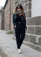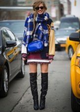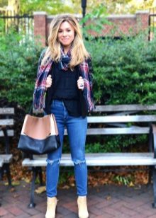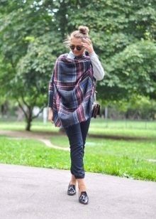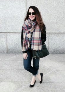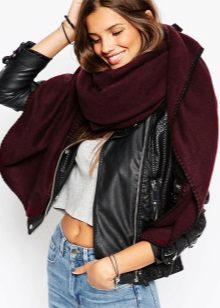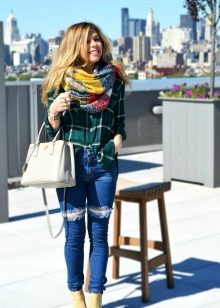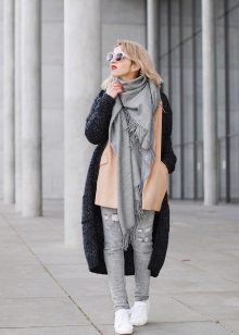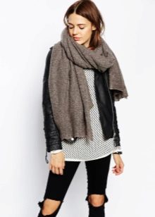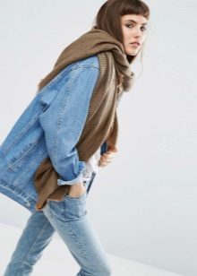 A voluminous scarf-scarf will be an excellent addition to the image with a jacket-jackets. Especially if you wear it with short shorts or tight-fitting jeans. An oversize scarf will create the missing volume, emphasizing the fragility and sophistication of your figure.
