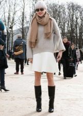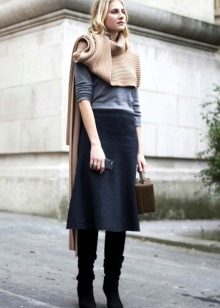 A long scarf-scarf looks great with a skirt of any length. For a soft, cozy look, prefer a strict midi. Choose straight models made of thick fabric.