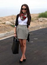 Also, a stylish scarf will complement the look with any miniskirt. It can be a pencil skirt, a trapeze or a flared sun.