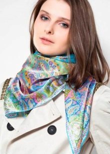It is a pleasant to the touch, smooth fabric that has a characteristic sheen. Like any other material, silk should be felt before purchase, since there are products of dubious quality. Of course, a silk scarf is categorically not suitable for the winter season. If you still want to decorate with your help a business or classic look, give preference to a combination of silk and delicate cashmere.