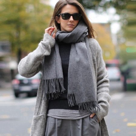 Cashmere is one of the most expensive and status materials. The scarf is thin, light and very warm. This is the only accessory that deserves to complement the classic coat.