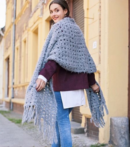 Most often, such products are crocheted from thin yarn, so such a scarf is not suitable for the winter season. But he will easily fit into the spring or autumn look, give you a certain charm and charm.