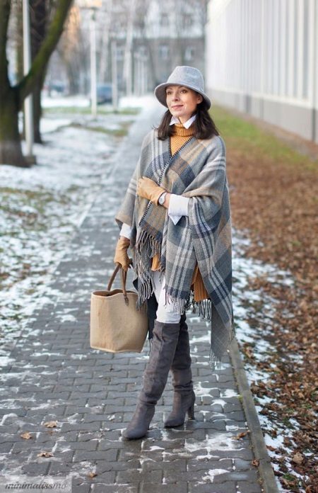 Women of elegant age are also suitable for beautiful scarves-scarves. Any image decorated with this accessory is delicate and sophisticated. Give preference to soft colors: gray, beige, ocher, caramel and other pastel shades.