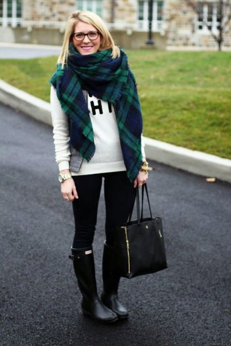 Most young girls choose giant scarves. They are very warm and comfortable, but if you are used to dynamic movement, you may be uncomfortable. Conversely, if you like to wrap yourself in a scarf, like in a plaid, such a voluminous accessory will definitely suit you.