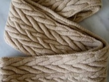 Large knit scarves are created from thick yarn and with the help of knitting needles or hooks of large diameter, three-dimensional patterns are obtained through the use of special methods and knitting techniques.