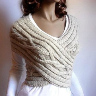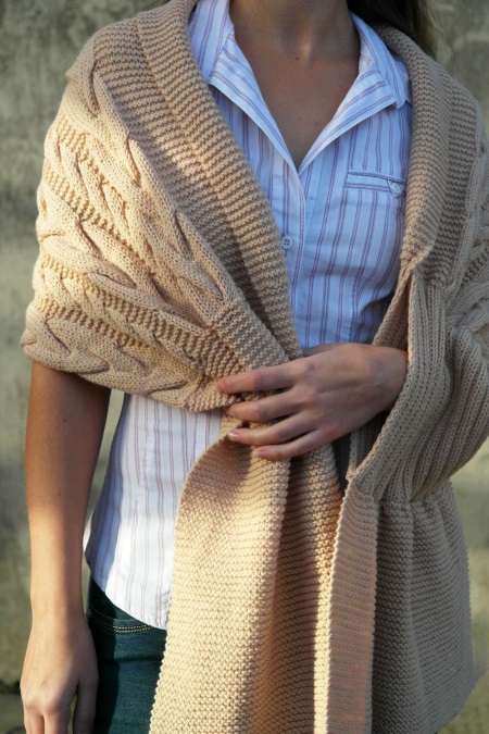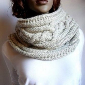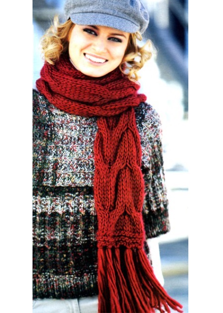 - voluminous double-sided scarf. The pattern with braids on such a scarf does not differ on both sides, so that it can be worn without hiding the inside and wrapped, twisting;