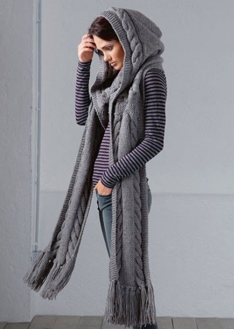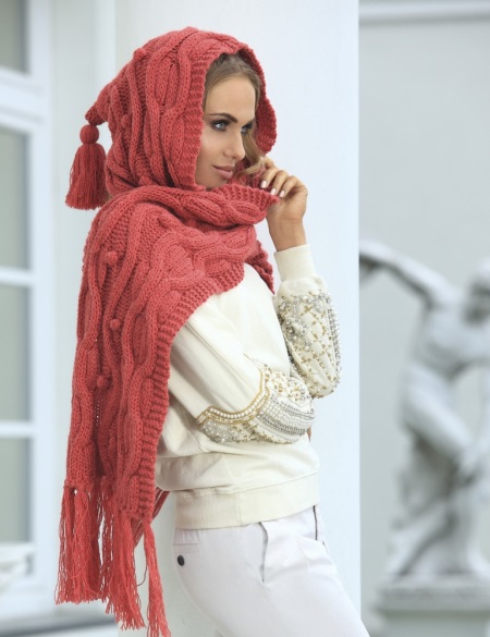 - a scarf-hood with braids is not only an original, but also a very practical accessory: it covers not only the neck, but also the head;