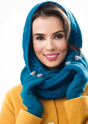 You can wear snood scarves in different ways. If the diameter of the ring and the width of the scarf is small, then it is worn around the neck like a collar. You can cover your head with a wide scarf.