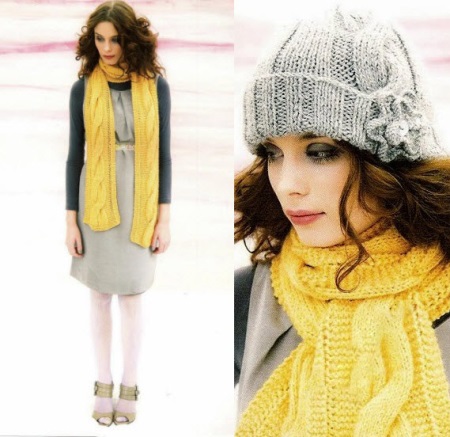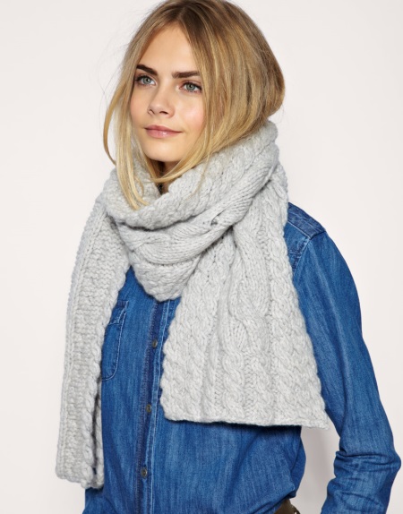 Knitted scarves in fashion is not the first season. The current trend today is bulk coarse scarves or with embossed patterns. Many fashion designers include such scarves in their collections, while fashionistas and fashionistas are happy to wear it. Interesting voluminous knitted scarves and fashionable images with them were presented by Donna Karan (DKNY), Burberry Prorsum and Rodarte.
