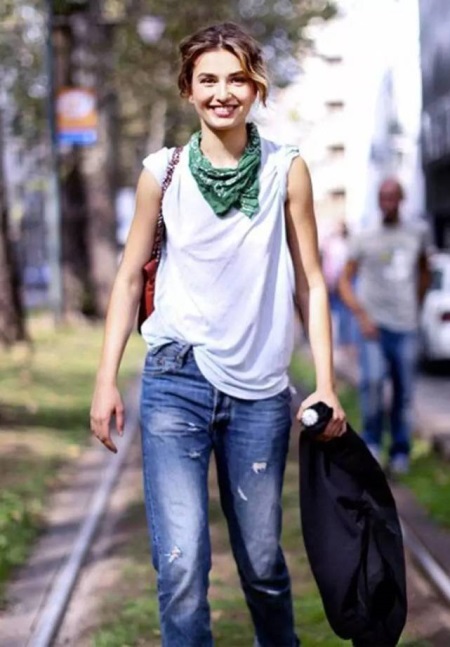 There are a lot of options for wearing scarves, materials, colors! But this season will delight us with another type of scarf - a scarf-bandana.