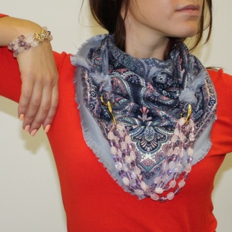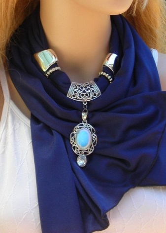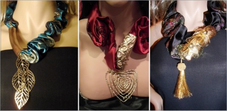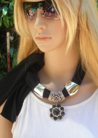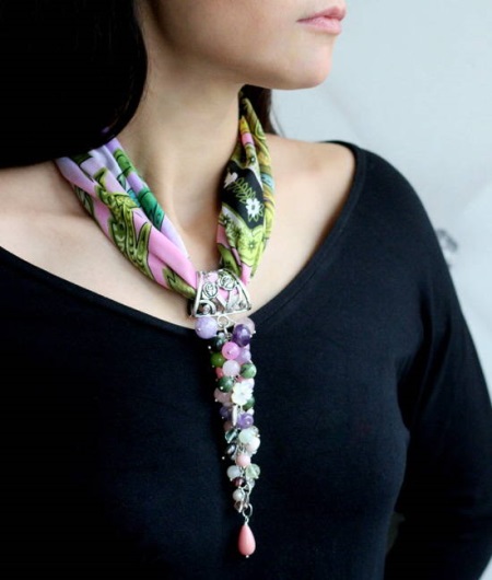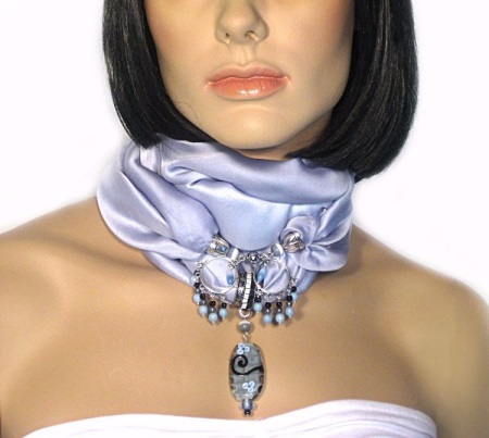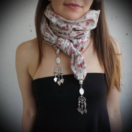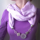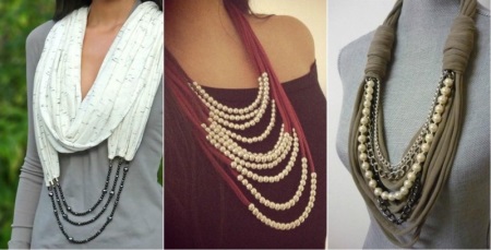 In the modern market, such models of scarf necklaces are common, which consist exclusively of linen and a beautiful design in the form of a necklace on it. The last part, as a rule, is located right in the middle of the product.