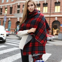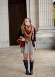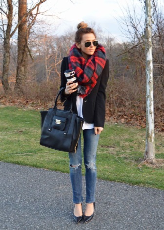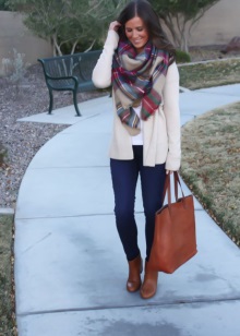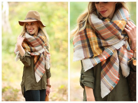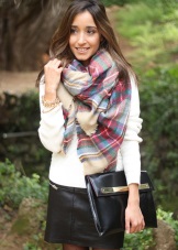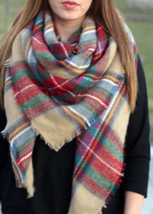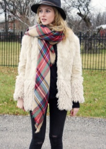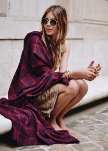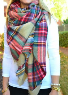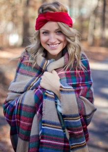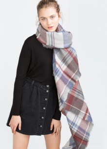 When choosing an accessory, attention should be paid to its length. To do this, throw the plaid over your shoulders. The length of the plaid scarf should not be lower than mid-thigh.