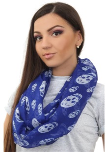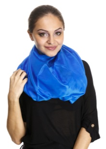 Bright blue scarves concentrate on the prominent part of the female figure - on the chest. So if your goal is to win the heart of a man, boldly tie this model around your neck.