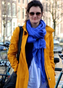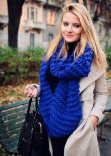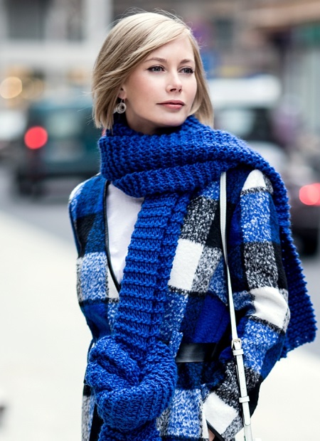 Warm scarves provide beauty and give comfort away from home. Against the backdrop of a snowy city, a blue scarf will create an interesting contrast that draws attention to the person of the fashionista.