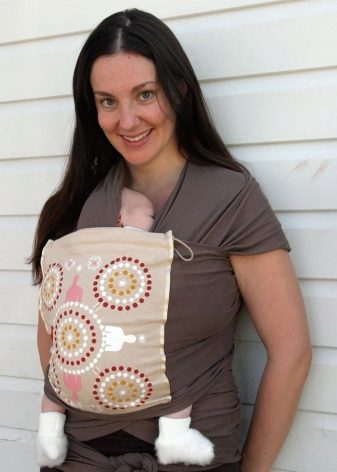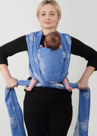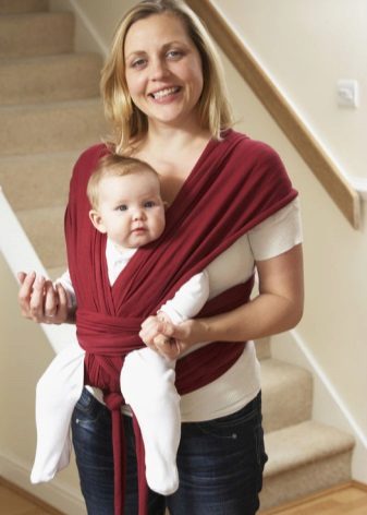 It is convenient to start babywearing with a knitted scarf. It is easy to adjust, tighten. It is very pleasant to the touch and soft. However, as the child grows and his weight increases, the knitwear, stretching, will begin to sag. The fragile spine of the baby will be forced to maintain the desired shape, which is fraught with curvature.