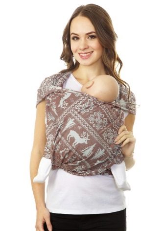 A great option for a baby’s fragile spine is Sling scarf made from natural linen and cotton fabrics. Such a scarf will tightly fit the back of the child and the entire load will be transferred to the canvas. Excess stiffness of these tissues will disappear after a few washes.