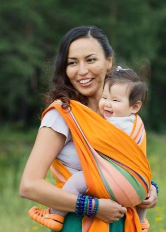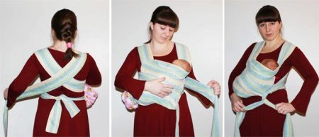 One of the most versatile is a sling scarf. It can be used both for winding “Cradle” for newborns and in more complex windings for older children.