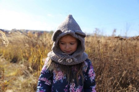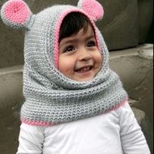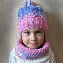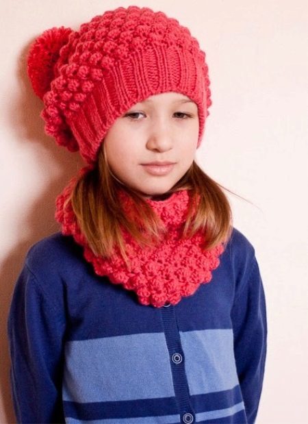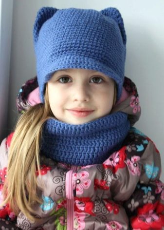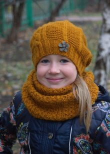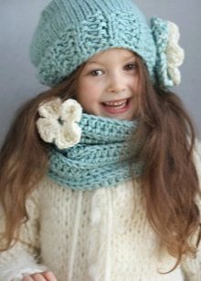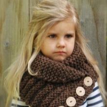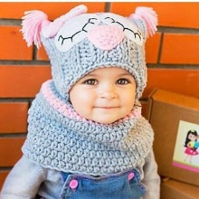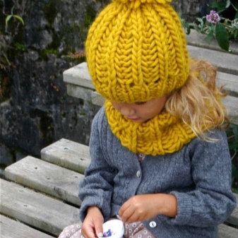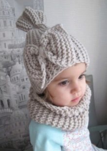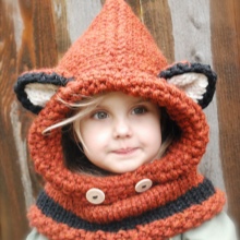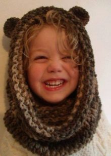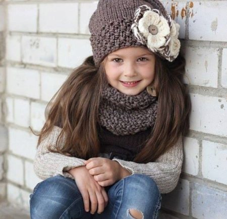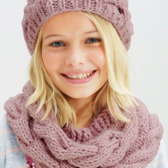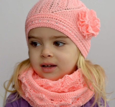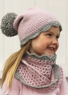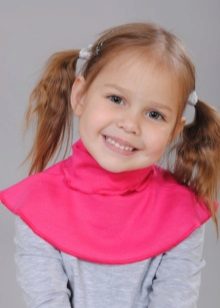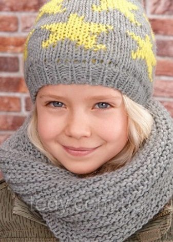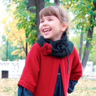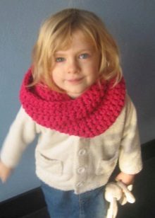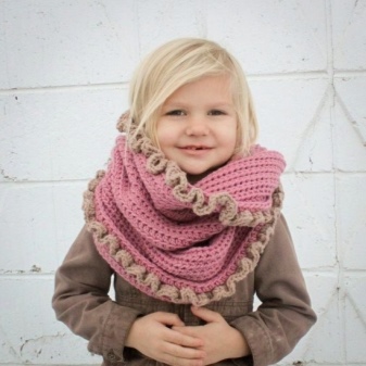 Now about children's models. Usually, the minimum size of a snout is 22 × 120 cm, which corresponds to a girl of 6-8 years old. For younger babies, parents usually choose ordinary scarves and hats. If desired, of course you can find or tie a snood for crumbs. Girls 4-5 years old can wear a collar 15 cm wide and 99 cm long.