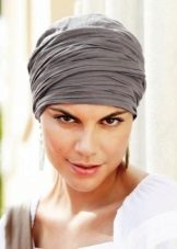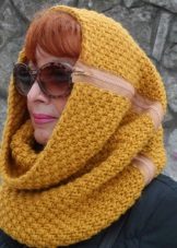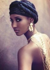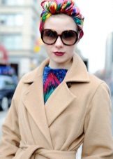 Another option for wearing a cord scarf is to tie it on your head. A voluminous dressing will warm and hold your hair in windy weather. As a headdress, you can use the simplest scarf if you tie it in the form of a turban. Turban returns to fashion with an enviable regularity - it was popular in the 40s and 70s of the 20th century. Now this headgear can be found on the red carpet, on the street and on the beach. The stylization, so characteristic of modern fashion, did not pass by. Wide bandages a la turban began to appear, which can also be easily made from a scarf.