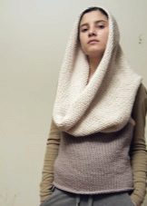There are also very interesting transformers, made from high quality yarn combining mohair and silk fibers or very fine merino wool. They are soft, weightless, perfectly draped, warm. Let in air. They are not hot in the room. Such a thing can replace a scarf, hat, cape, poncho, tunic. They do not have excessive plasticity, but thin enough that gives them the opportunity to become a scarf. Transformer scarf in the form of a pipe allows you to focus on the waist and demonstrate wide belts, corsets, or draw attention to the shoulders by trying on a large bright brooch.