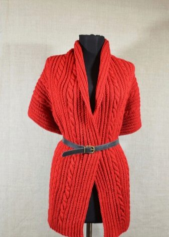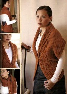 Scarf vests have long enjoyed love and popularity. It can be either special models with buttons on the back, or just wide stoles, draped accordingly with belts, belts, cords. Thus, you can throw on your shoulders any wide enough scarf. Among these models, there is a wide variety - light knitted cobwebs and thick woolen vests with braids, knitted and felted stoles, which are amenable to drapery.