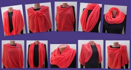 If you have decided on the design of the scarf-transform, then you can choose the right model in the store, in the catalogs of online stores or make an individual order for the master. You can create a transformer scarf yourself - knit or sew from a finished knitwear. Or maybe you want to play with the scarves, scarves and stoles available in your wardrobe, giving them a new life as a transformer scarf?