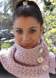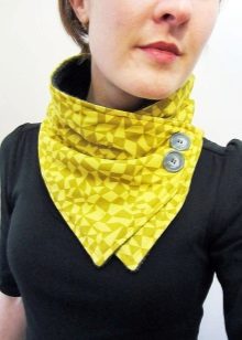A button scarf can also be tight-fitting or more voluminous. Most practical is a short shirt-front, which can be easily fastened and unfastened. A long scarf-collar, as a rule, is equipped with several buttons and is suitable for almost any clothing.