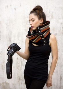 Putting a scarf-collar over your head, you can ruin the hairstyle. Therefore, the designers developed a button model. Such a scarf does not need to be modeled, spending on this precious time, it will always look perfect. And thanks to the selection of beautiful buttons, such a shirt shirt will further decorate your image. Female options are more suitable for a romantic style, while male ones are more suitable for a business one. As for children, such models are not very convenient for them.