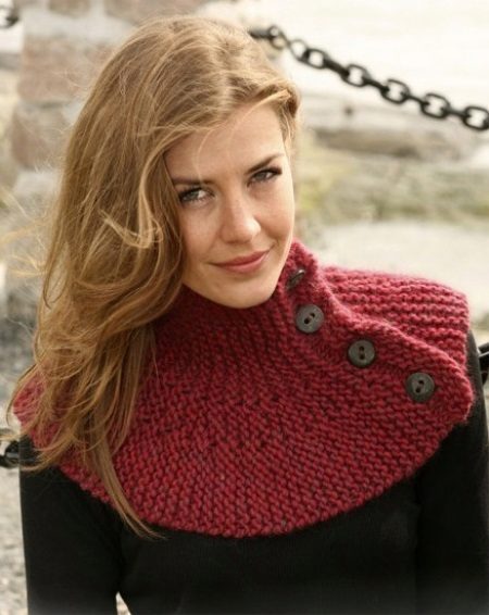 Scarves-collars made of thick yarn retain their shape best of all - they are dense and, moreover, they warm even in severe frost.