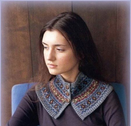 It should be noted that the assortment of shirt-front dolls in stores is not very large, it is easier to tie it to order in the studio or visit needlework exhibitions. Well, if you have at least basic knitting skills, you can easily make yourself an original thing, such a scarf-collar will sit perfectly, besides, you yourself choose the material, density and style.