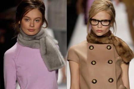 Warm thick yarn options can be worn under a down jacket or parka. Winter fur shirts are usually combined with fur coats, just don’t combine natural and artificial fur in one ensemble - it’s tasteless. In addition, a fur scarf-collar can turn an evening dress into a particularly stylish outfit, especially if the accessory is fastened with a brooch with precious stones.