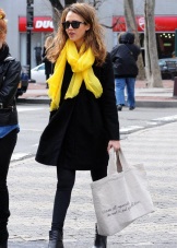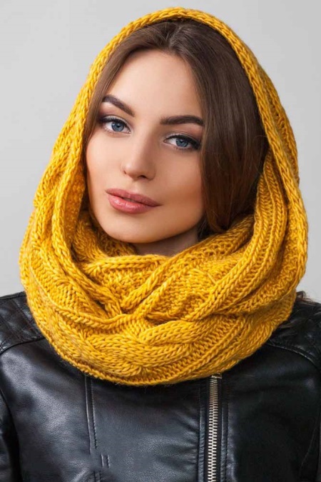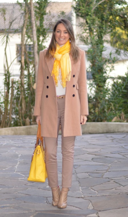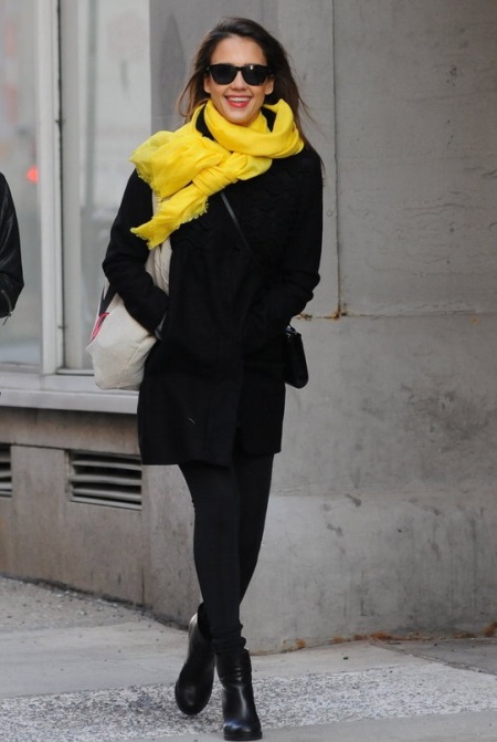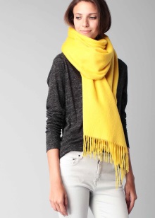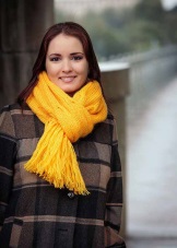 When the coolness replaces the warm days, only a yellow scarf in combination with a jacket or coat can give you sunlight on these gloomy days. Scarves made of light material, such as cashmere, are suitable for a classic-style coat. For models of free style, products made of warm and dense materials are more suitable.