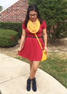 For clothes of red color, the yellow accessory is perfect, it will turn out a very elegant combination. Gray, beige and brown - these are exactly the colors that simply require you to complement yourself with something bright, that will add a spark to them.