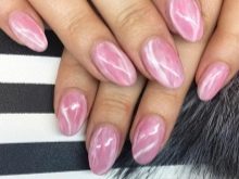 - Kapron effect on pink nails it looks quite original, while at the same time it gives expressiveness to the nails.