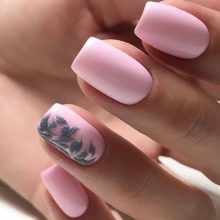 - Pink color is quite independent, so a manicure can be monochrome. But for such a design of marigolds, one should still prefer complex shades, for example, “dusty rose” or “caramel”.