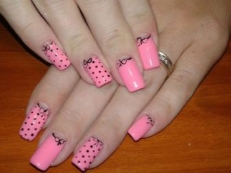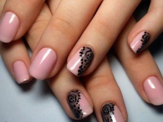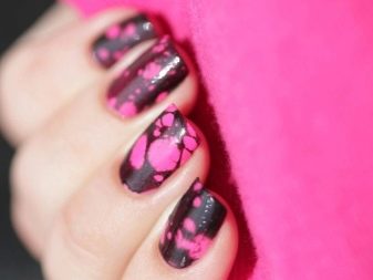 - The black pattern on a pink substrate looks quite expressive and is able to focus on your nails.