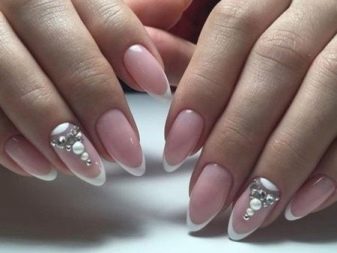 - Classic french manicure. Ideal for everyday design. But at a party, such nails will look quite relevant. If such a manicure seems too banal, you can diversify it with rhinestones or a pattern in the form of a beautiful flower.