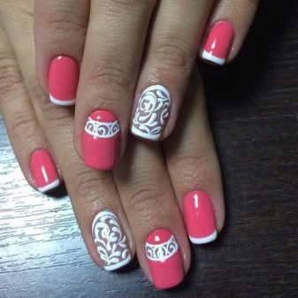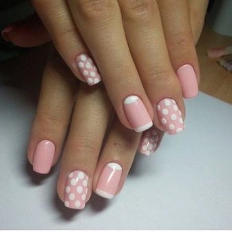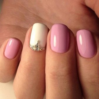 - The pink and white manicure is rather gentle. This combination is often used when decorating a wedding manicure, but for every day you can easily find a suitable design.