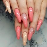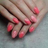There is where to turn to an experienced master. If your own nail plate is also quite long, you just have to choose your favorite design. Shellac with a pattern on long nails is suitable for a special occasion. It can be a wedding, birthday or New Year. In general, those cases when you want to shine in all its glory. But for everyday life, it may not be appropriate.