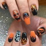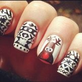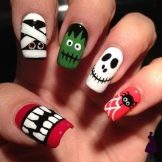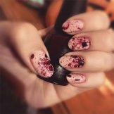 - Halloween Despite the fact that this holiday and the tradition of celebrating it came to us from the West, in Russia today it has become quite popular. And why not be a little kids, supporting a thematic masquerade. In the manicure, you can use quite dark saturated colors and completely unexpected patterns resembling pictures from horror films.